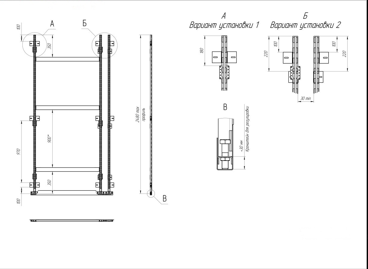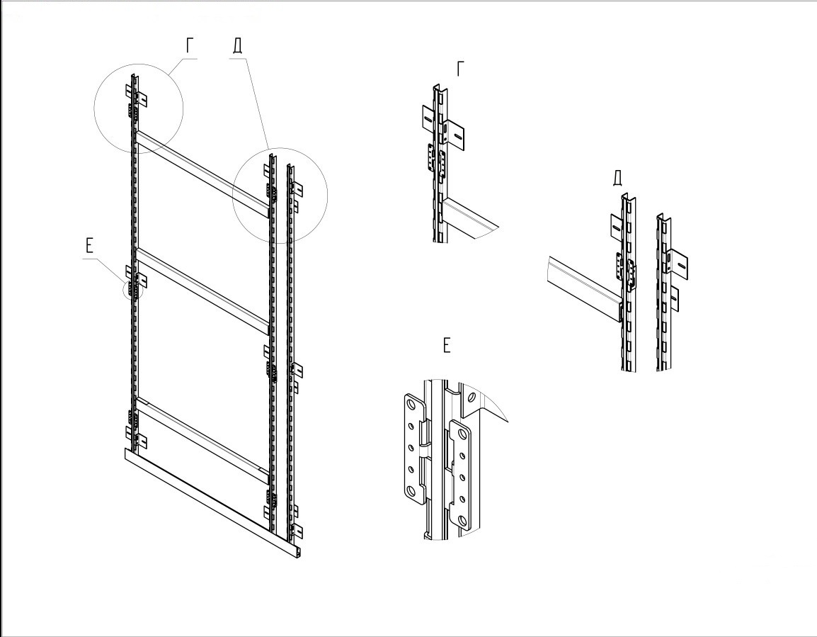 Основные несущие элементы подсистемы изготавливаются из стали марок Ст3 или оцинкованной стали, в зависимости от требований к прочности и устойчивости к коррозии. Допускается также применение нержавеющей стали — шлифованной или зеркальной — для декоративных и функциональных элементов.